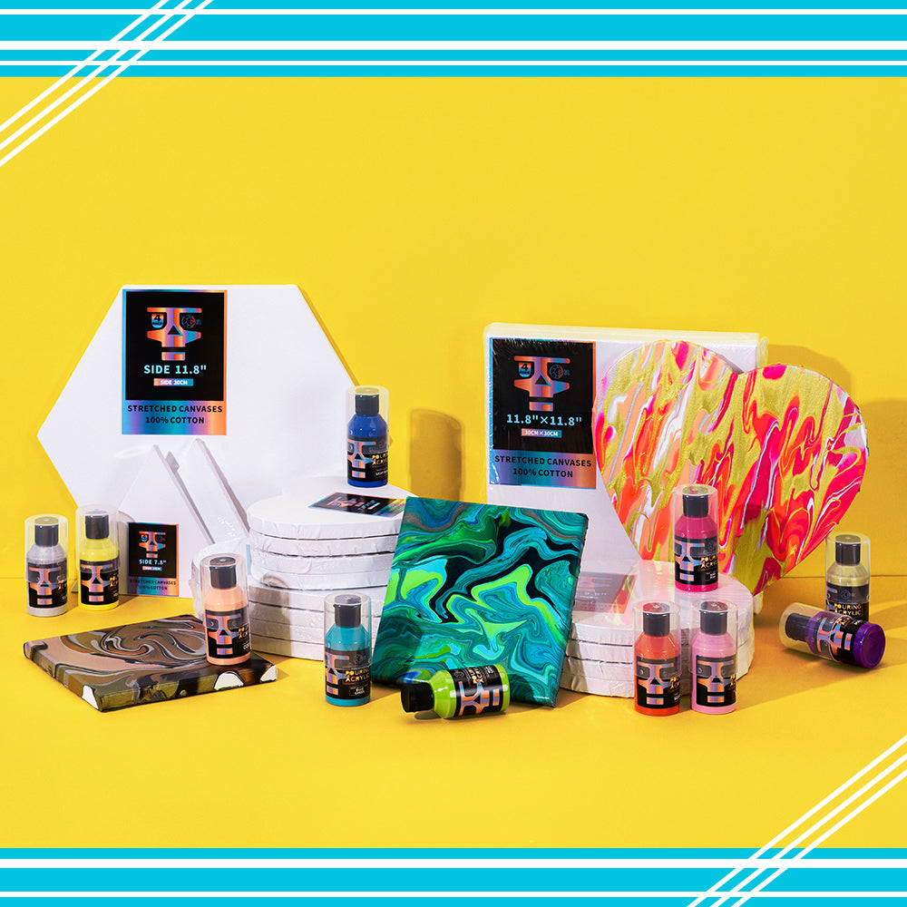 OPHIR 4X Stretched Cotton Canvas Boards Square Canvases for Oil Acrylic Painting